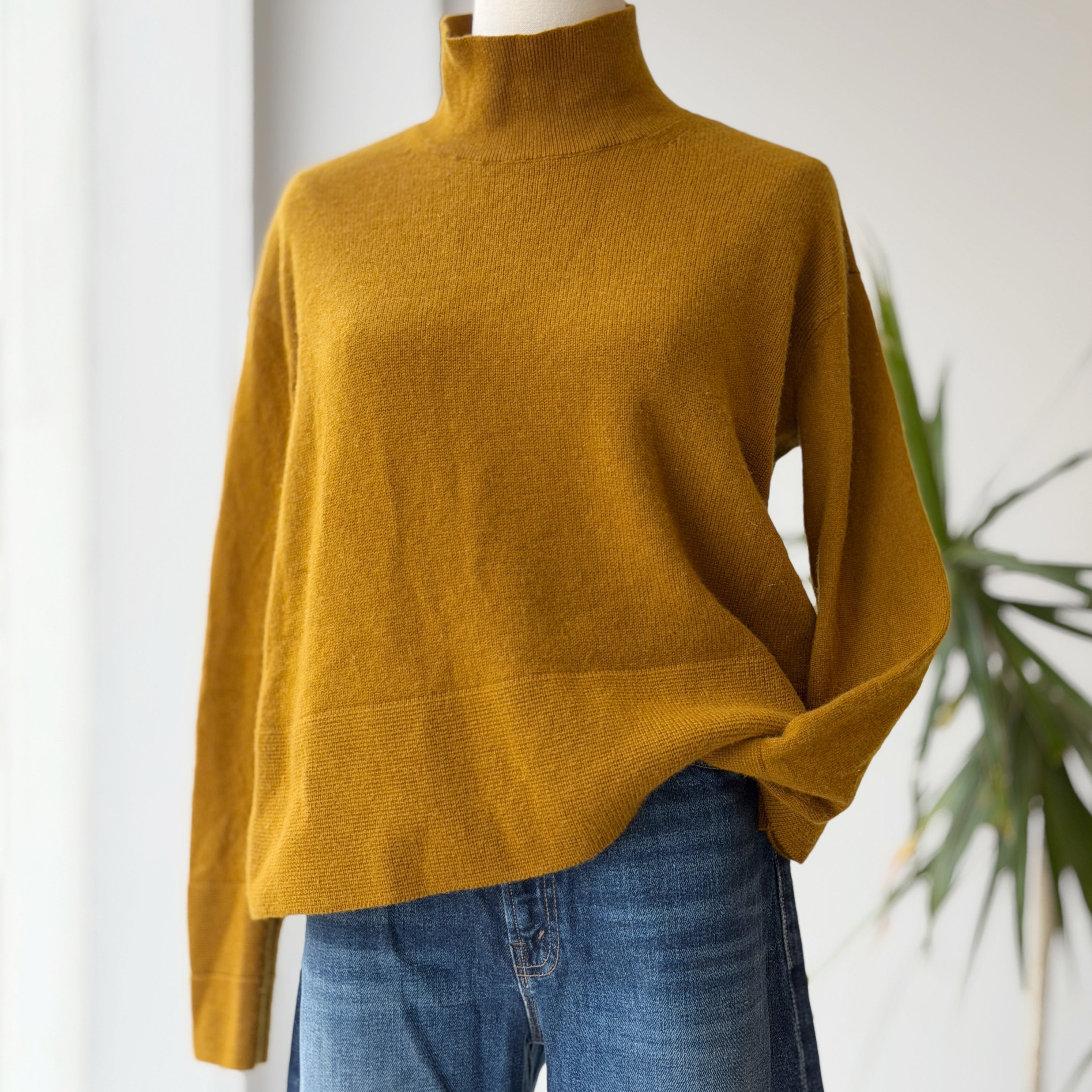 Everlane Ochre Cashmere Mock Neck Sweater, Small