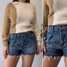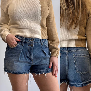 Frame Pleated Medium Wash Cut Off Shorts, 28