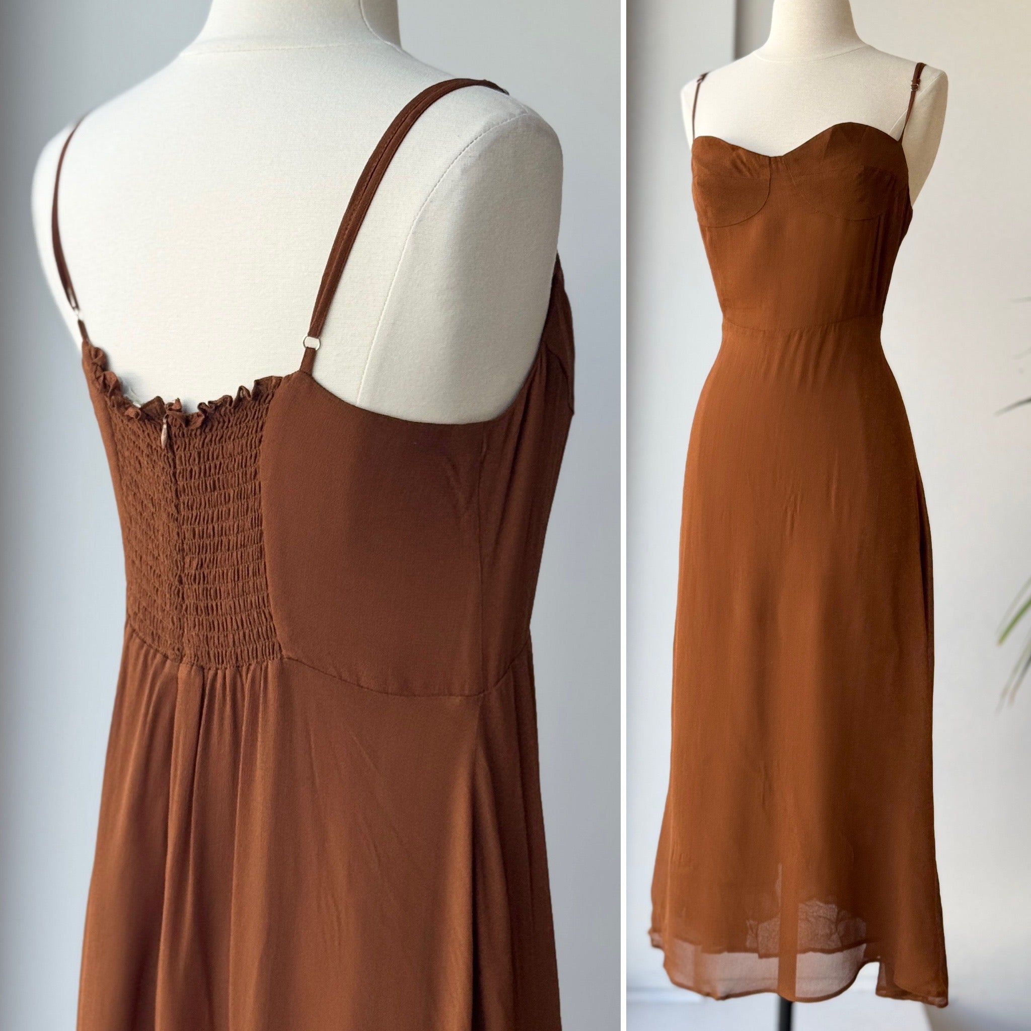 Ali Golden Georgette Brown Midi Dress, Large