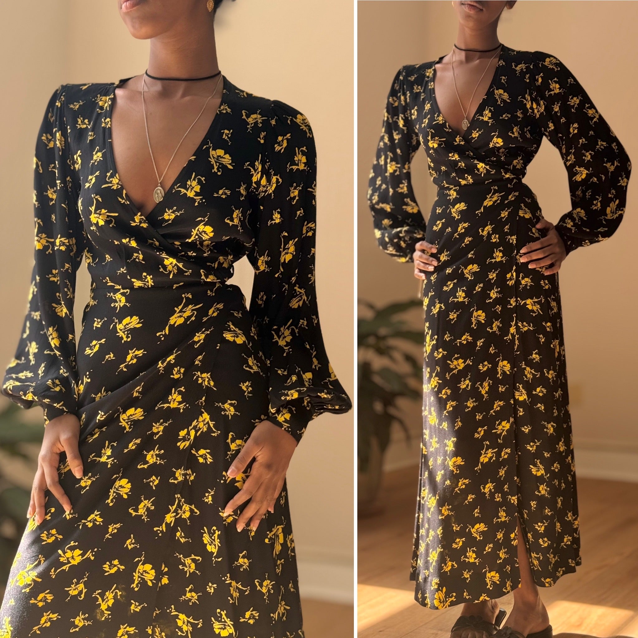 Ganni Black & Yellow Wrap Dress, 32