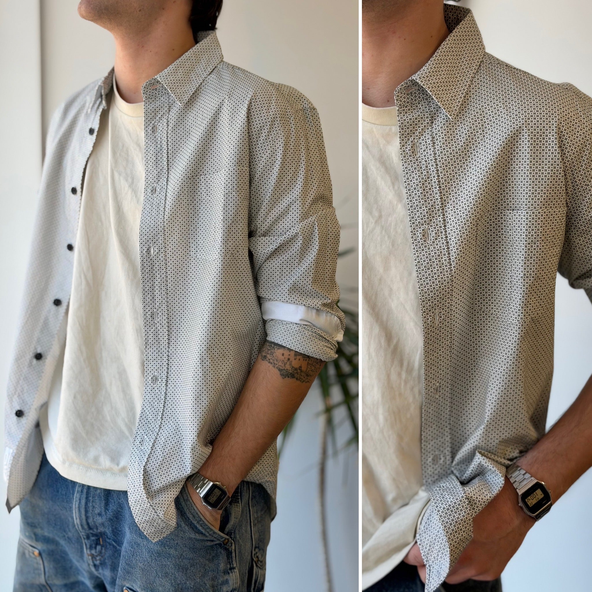 Rag & Bone Black & White Patterned Button Up, Men's Medium