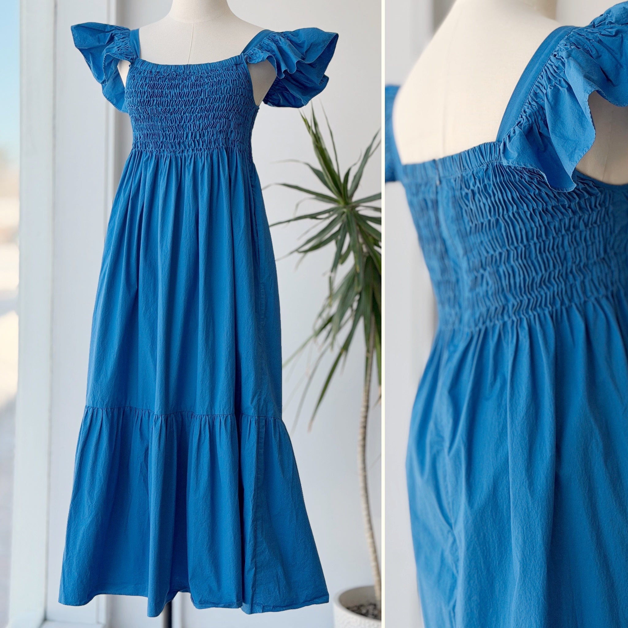 Sea NY Simona Smocked Blue Dress, XSmall
