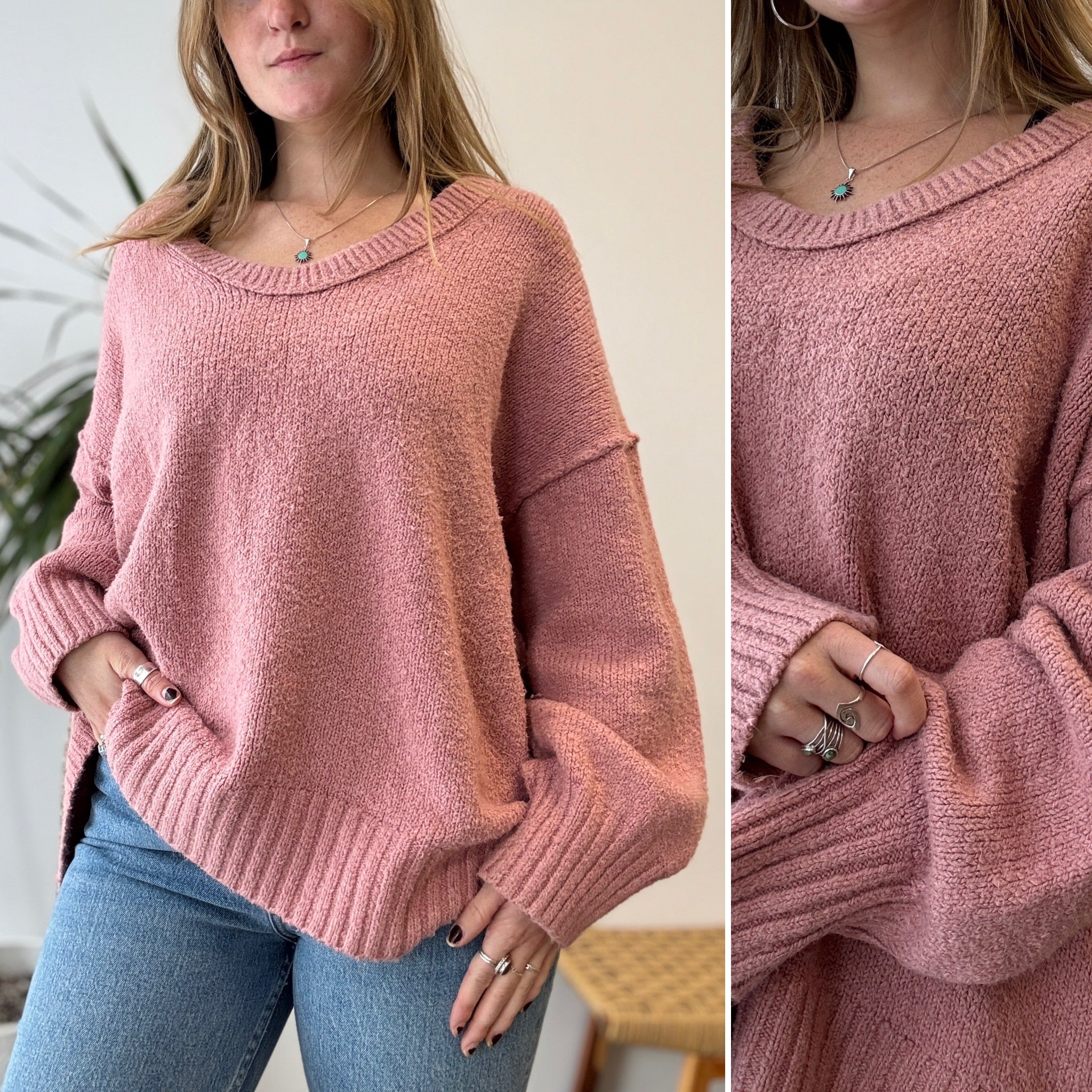 Free People Brookside Sweater in Pink - gently worn, Medium