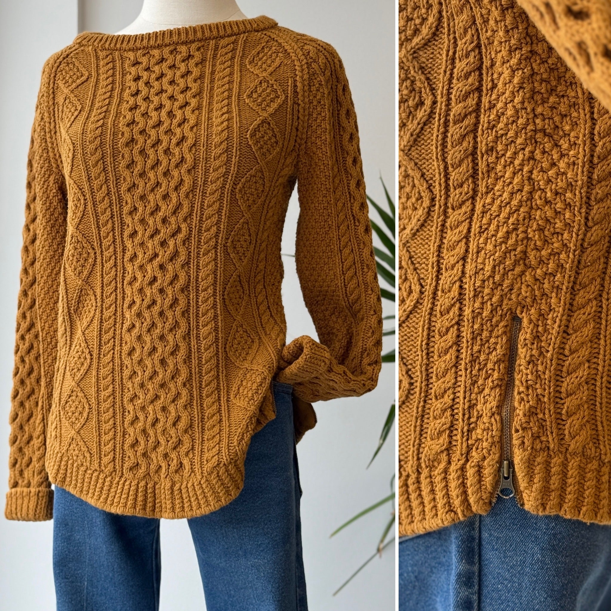 LL Bean Signature Mustard Cable Knit Sweater, XXSmall
