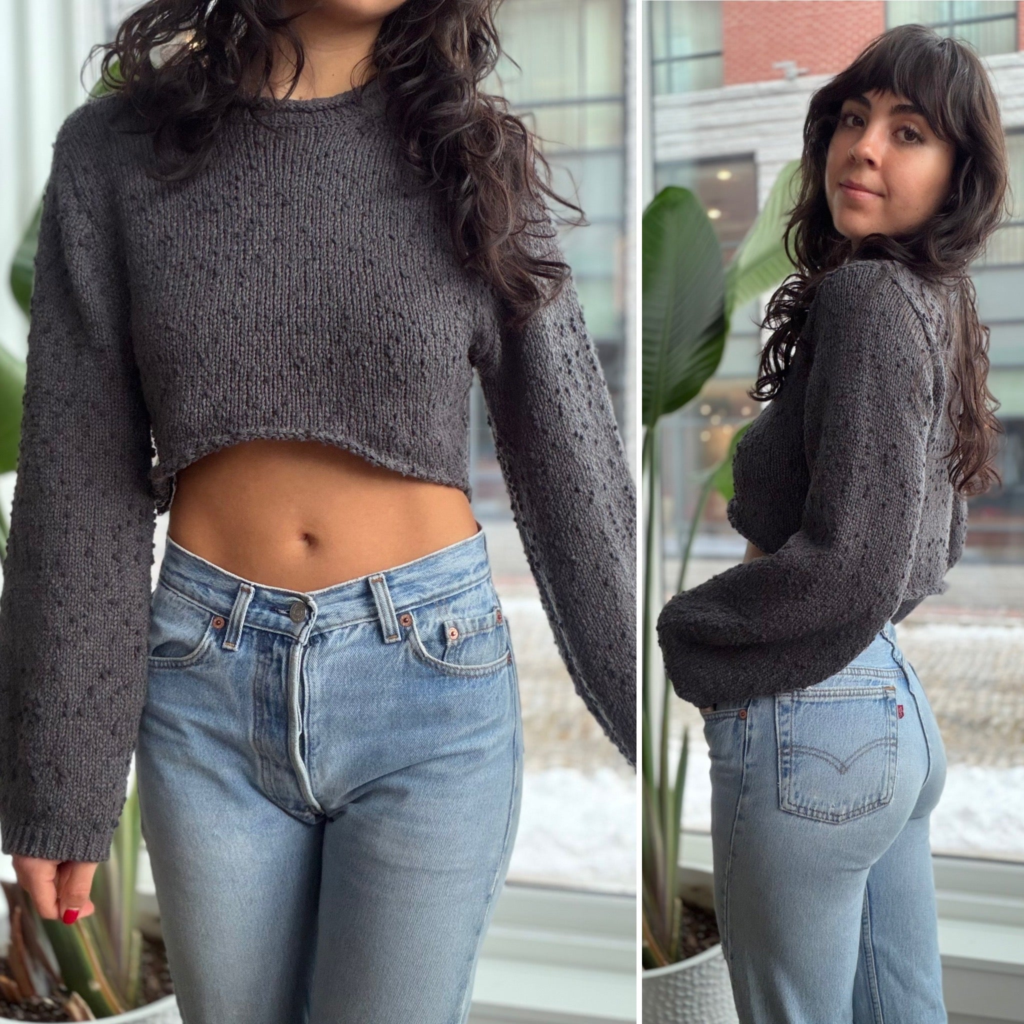 Shown on Liv who is 5’5”, wears a 26 in jeans and a small/xs in tops.