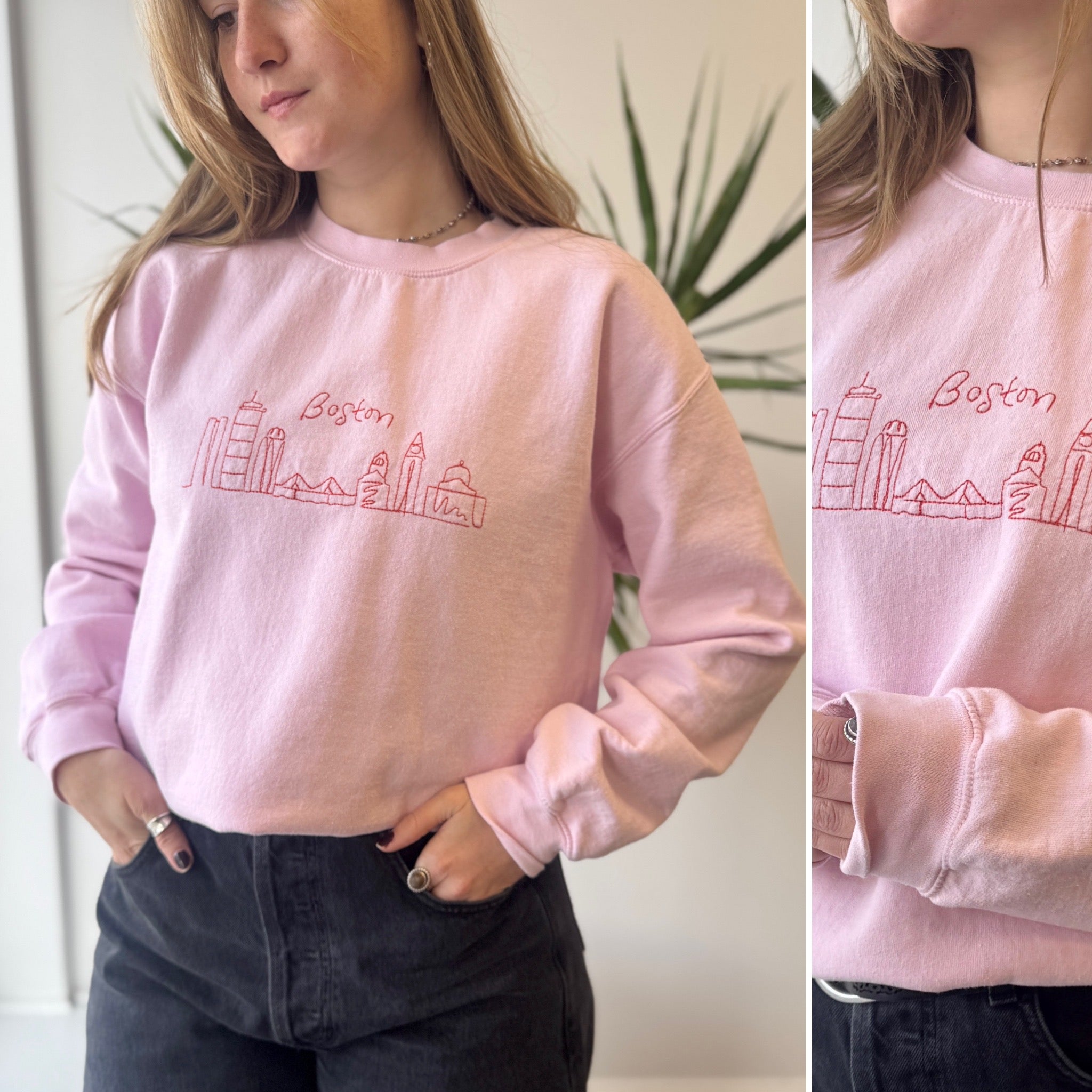 Mur Grand Pink Boston Embroidered Sweatshirt, Medium