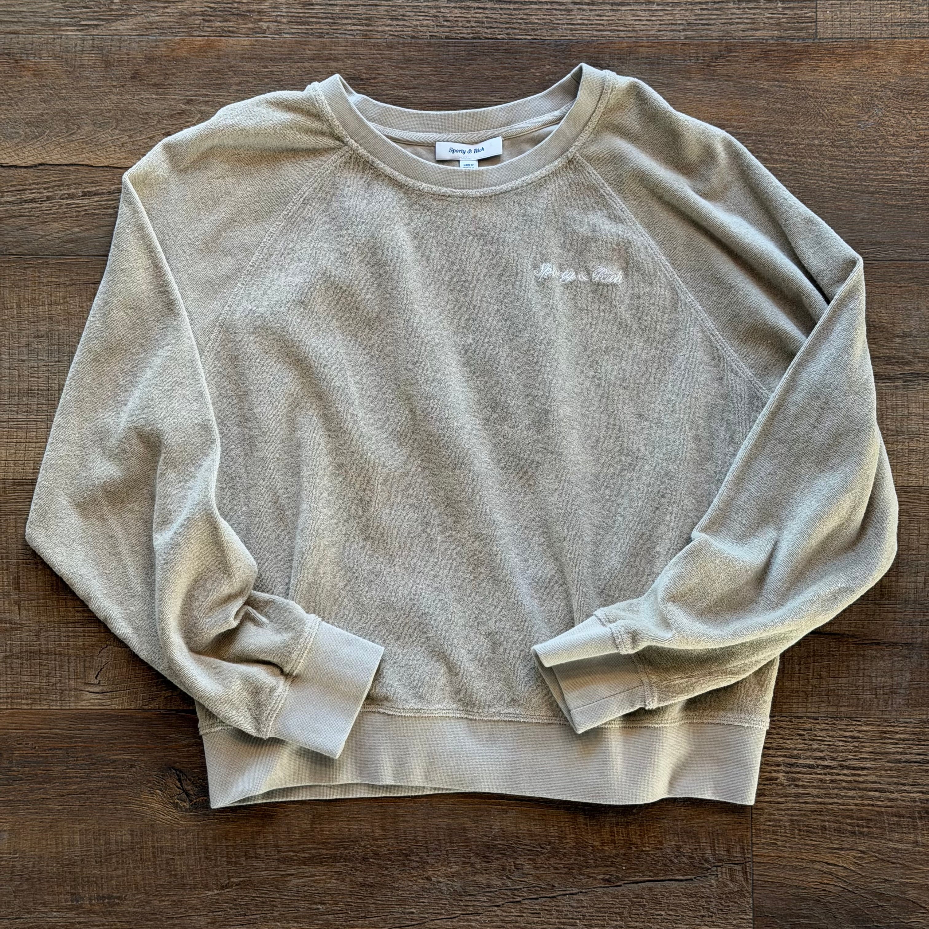 Sporty & Rich Tennis Club Terry Raglan Crewneck Sweatshirt, Large
