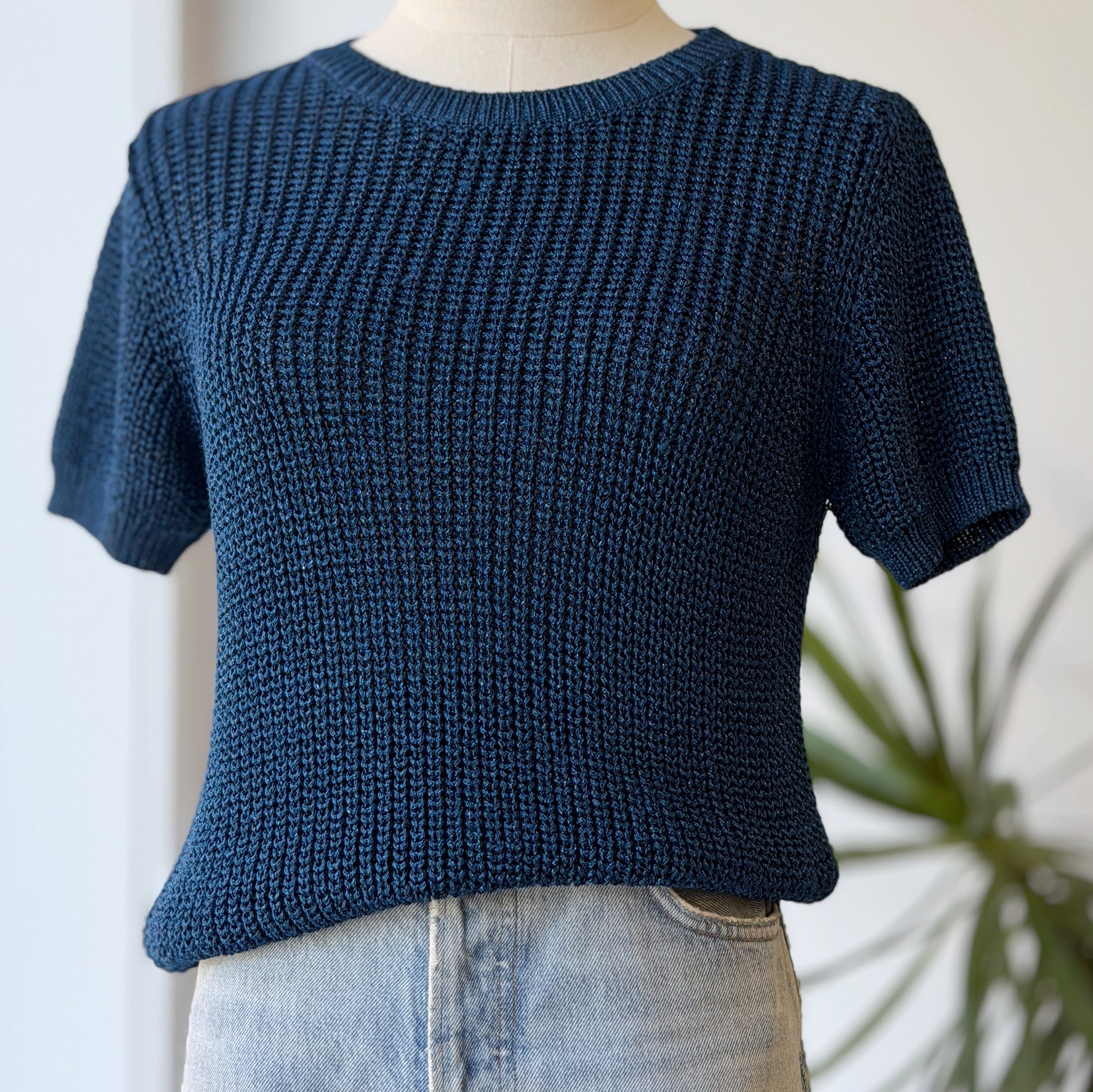 APC Metallic Blue Knit Short Sleeve Sweater, XSmall