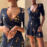 Reformation Navy Floral Wrap Mini Dress, Small